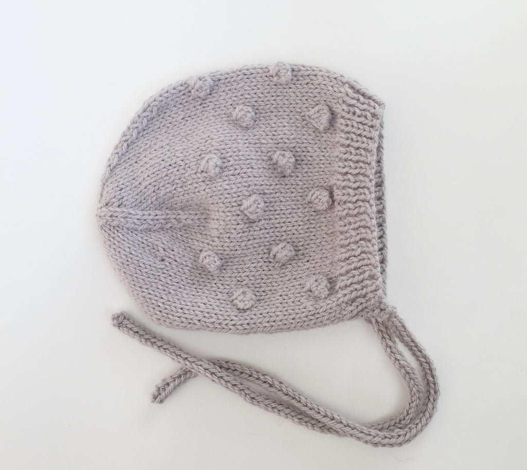 - The bobbles on this bonnet are a fun addition to a classic baby hat. Perfect for a baby shower gift, a photo prop, and for everyday wear. Hand knit with a soft yarn.