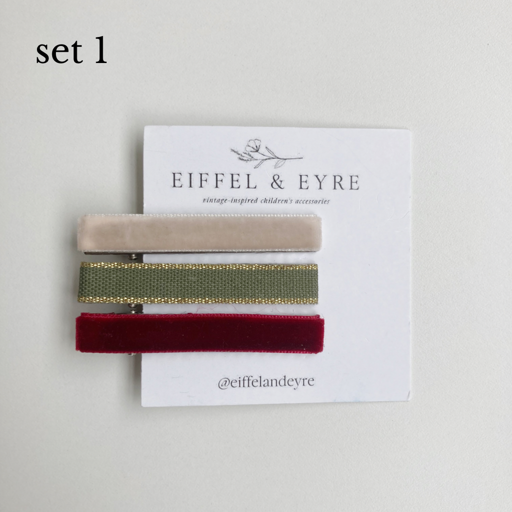 - The holiday version of Eiffel & Eyre's bar clips, these sets add a bit of holiday sparkle for little girls (or their mamas)!