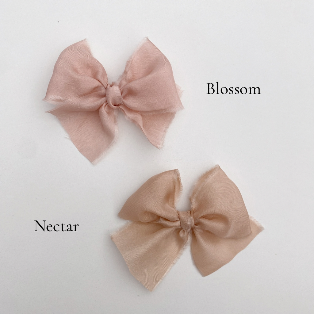 - Please note: these bows are quite delicate and the raw edges are part of their charm. Some fraying will occur over time.