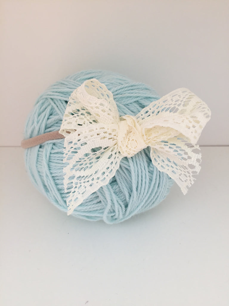 - A pretty lace bow that dresses up any outfit. Bow measures 3.5 inches across.