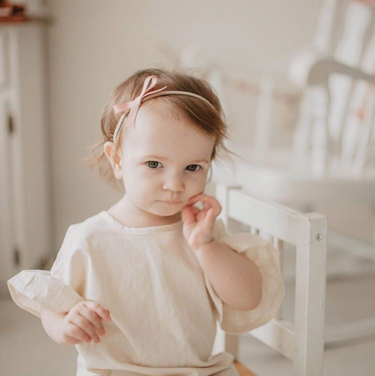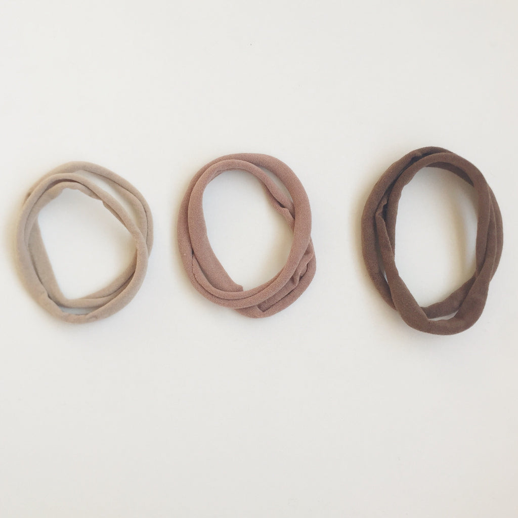 - Each bow is securely fastened with needle and thread to a nylon band that will stretch to fit any size of head, from newborn to adult.