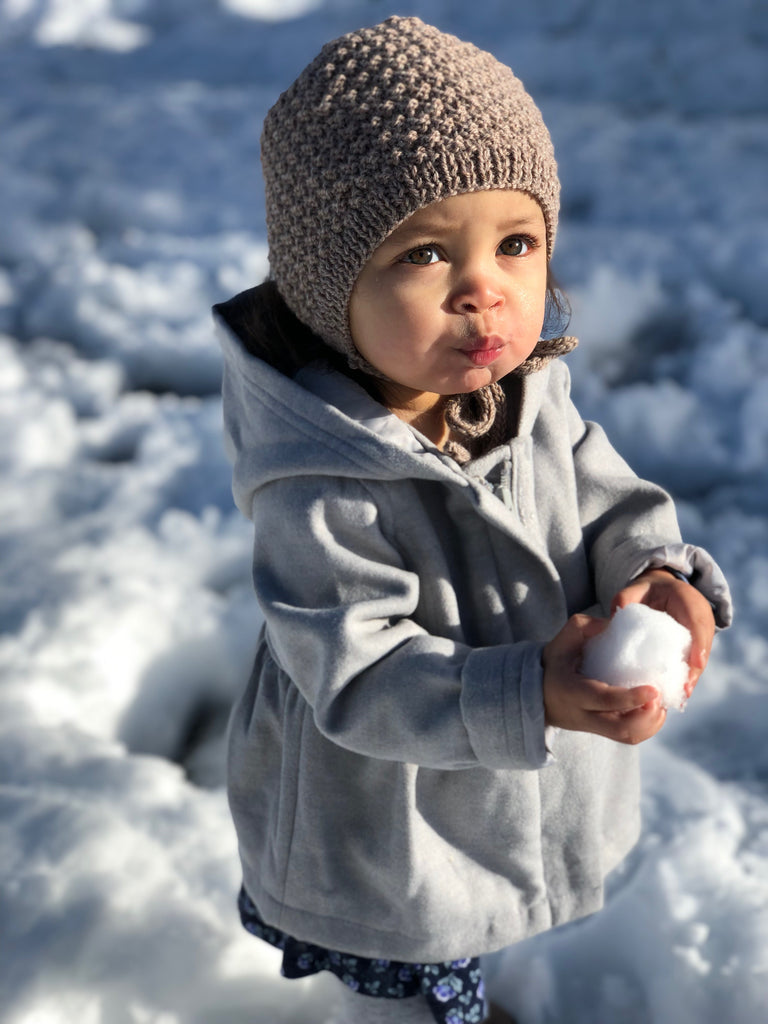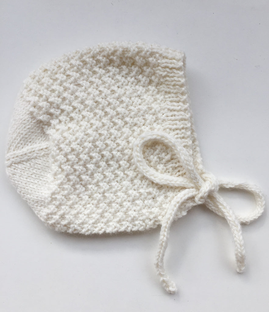 - Light and airy in colour and perfect for year-round wear, this cozy and classic bonnet features a subtle textured pattern. Hand knit with a soft yarn.