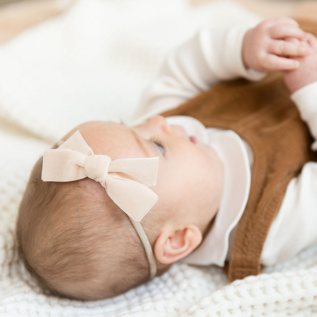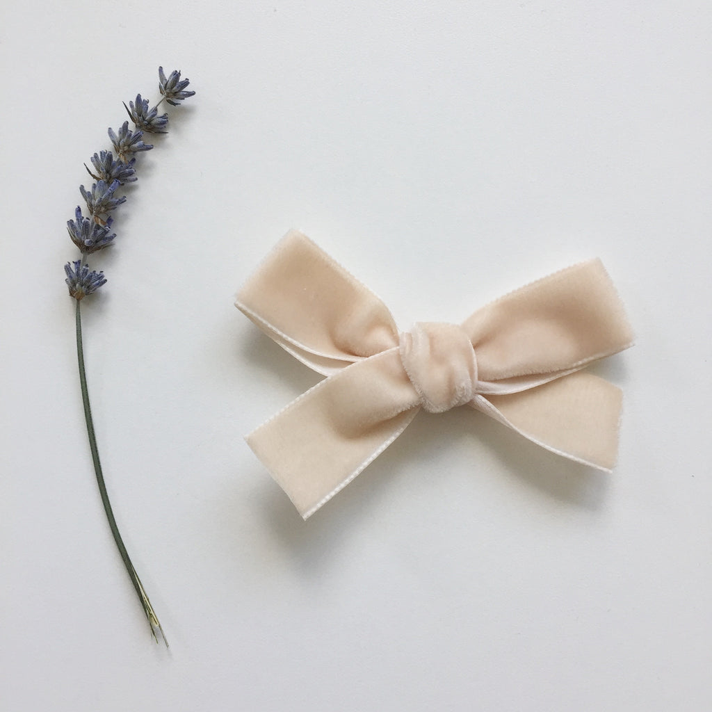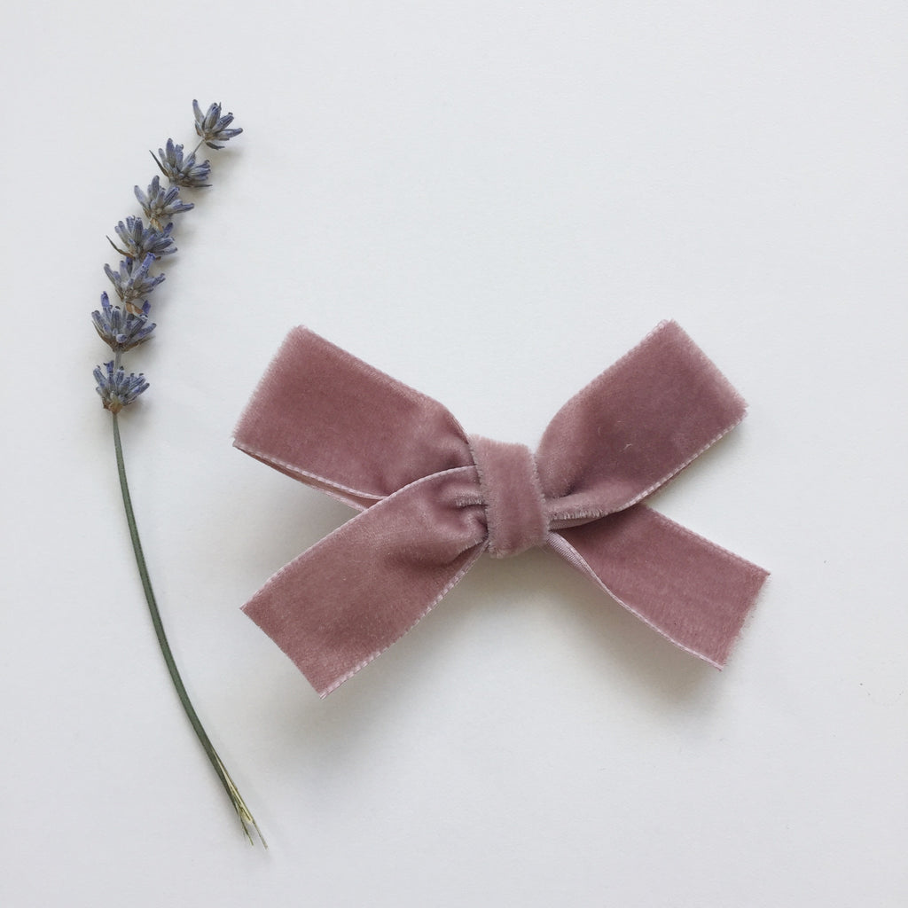 - These bows are made with Swiss Velvet ribbon and make an elegant accessory for your baby or little girl. Bow measures 3.5 inches across.